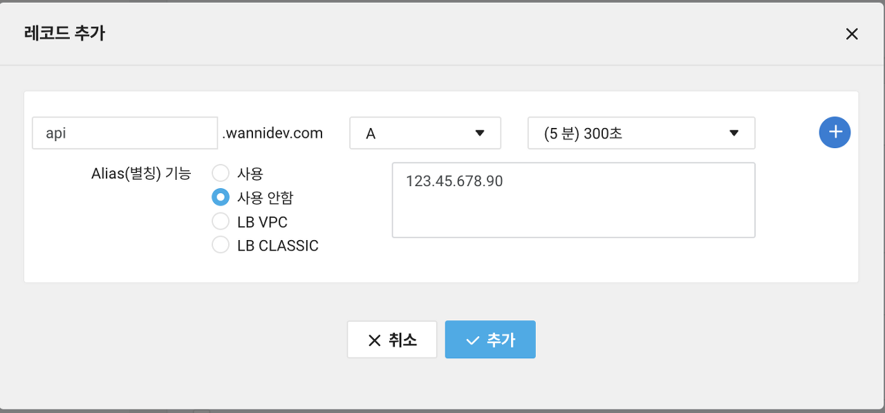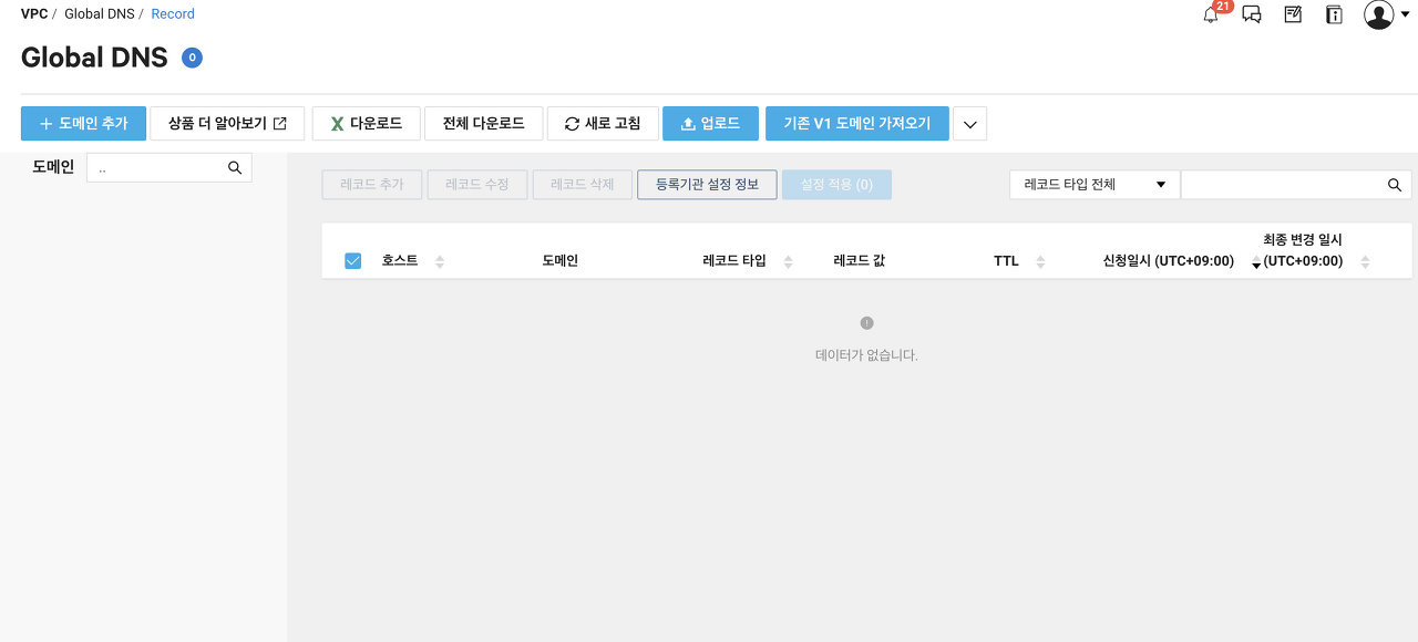 네임 서버 변경이 완료되었다면, NCP Global DNS 서비스에서 레코드 추가를 통해 서버에 호스트 정보를 매핑할 수 있습니다.