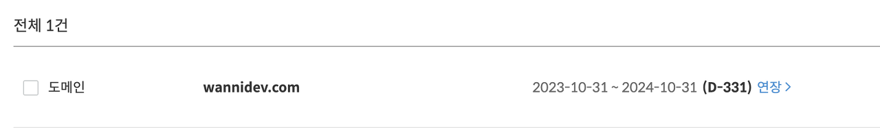 구매한 도메인은 개인 대시보드를 통해 확인할 수 있습니다